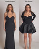 - Fit-and-flare silhouette with shiny black taffeta bubble skirt and pockets.